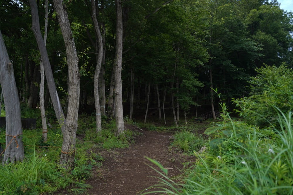 区画サイトとなっており、No.1〜No.6の6区画が用意されています。少し傾斜のある土地ですが、区画内は平らに整地されており快適に過ごすことができます。