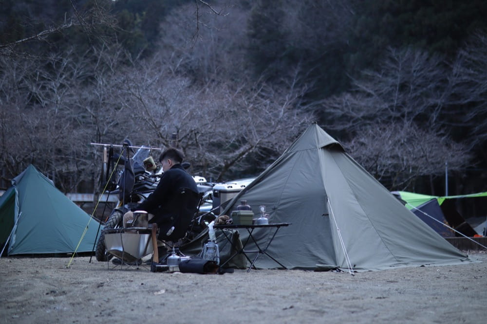 安価で焚き火の火の粉にも強いですし、バイクに積めるサイズ感。スキのないテントに仕上がっています。