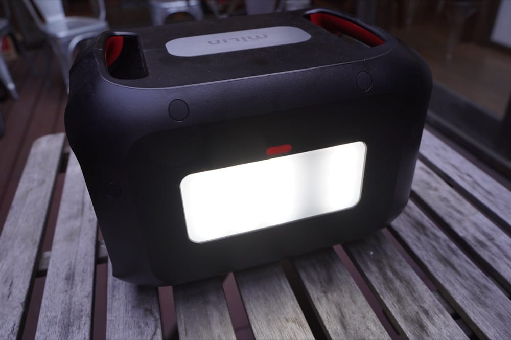 ある種の飛び道具として、背面パネルにLEDライトが付いています。28Wの蛍光灯に相当する1400ルーメンの光を発揮。