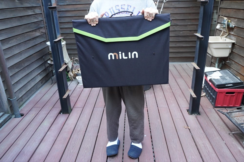 miLIn(ミリン) 本体と一緒に、100W出力のソーラーパネルもお借りしましたのでこちらも試してみました。