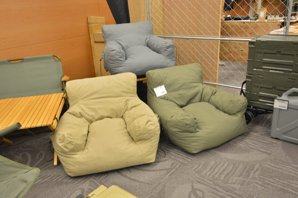 人気製品はこちらのコンプレッションガーデンソファ。届く時はコンプレッションされており小さい状態ですが、3日間ぐらいかけてこの大きさに膨らむというユニークなソファです。