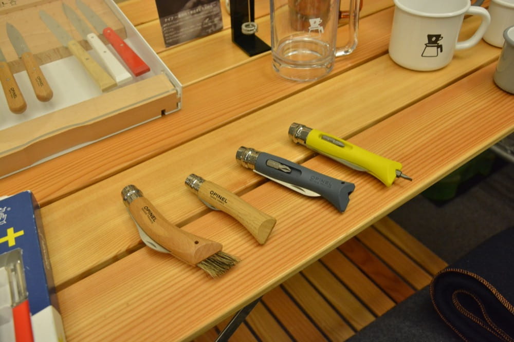 その他、マニアックなオピネルの番手など。「2本目のオピネル」として提案。一例として一番左はキノコナイフ。