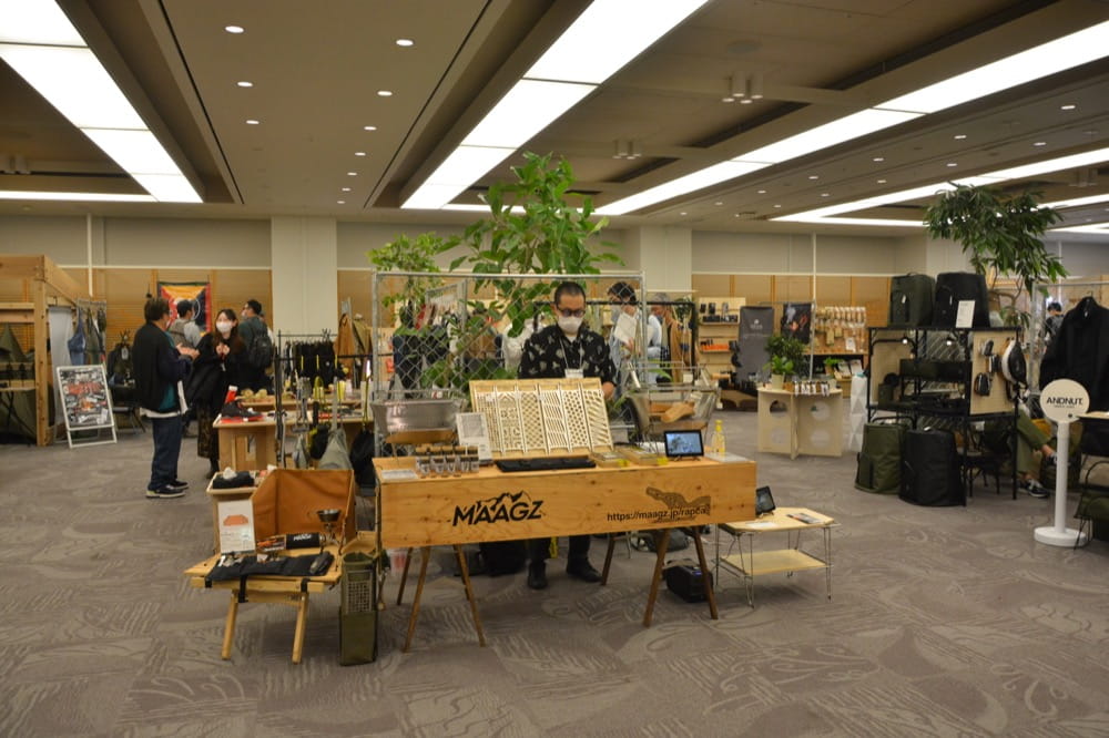 出展ついでに、周りで出展されていたアウトドア系ブランド様へ取材をさせていただきましたので、ブースの様子やおすすめ製品などをご紹介させていただきたいと思います。