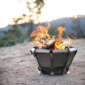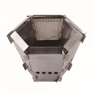 つぼみ(BUD)をイメージした八角形の組み立て式二次燃焼焚火台