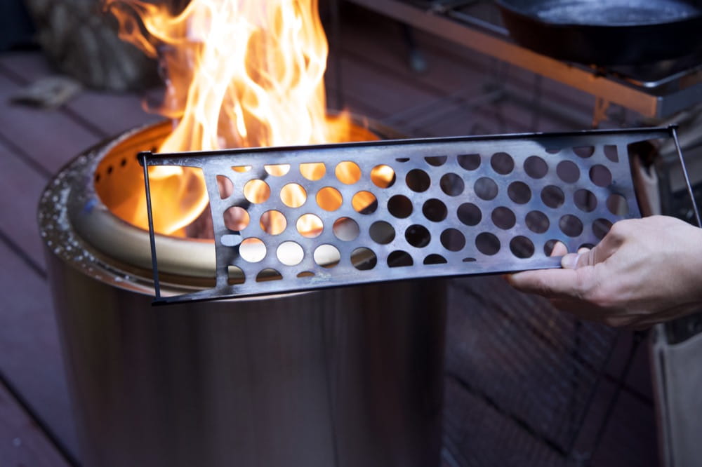 煙として排出される可燃性ガスを二次燃焼として燃焼させるので、通常の焚き火と比べて煙の少ない焚き火を楽しむことが可能です。