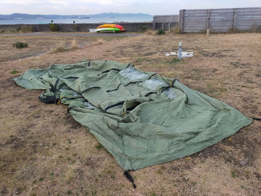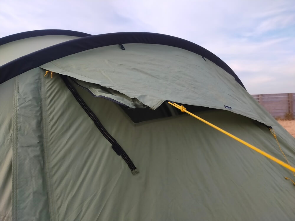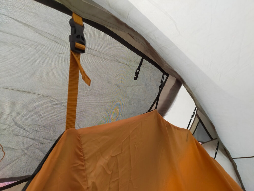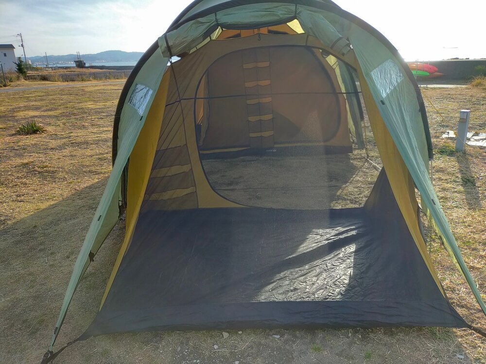 こういった窓を持ったテントは、近年ではあまり見かけないデザインです。好き嫌いが分かれそうではありますが、著者は気に入っています。