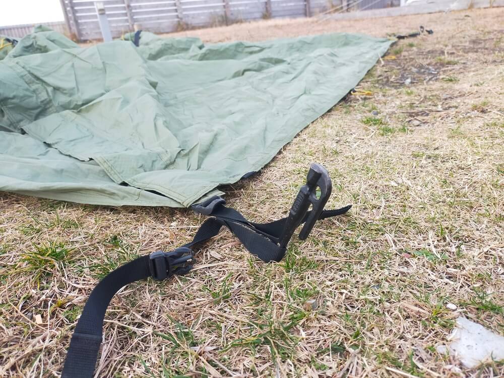 4本のポールの両端には、ペグダウンする箇所がありますが、インナーを取り付ける前にペグダウンするのはおすすめできません。インナーテントが地面から浮いてしまうことがあるからです。