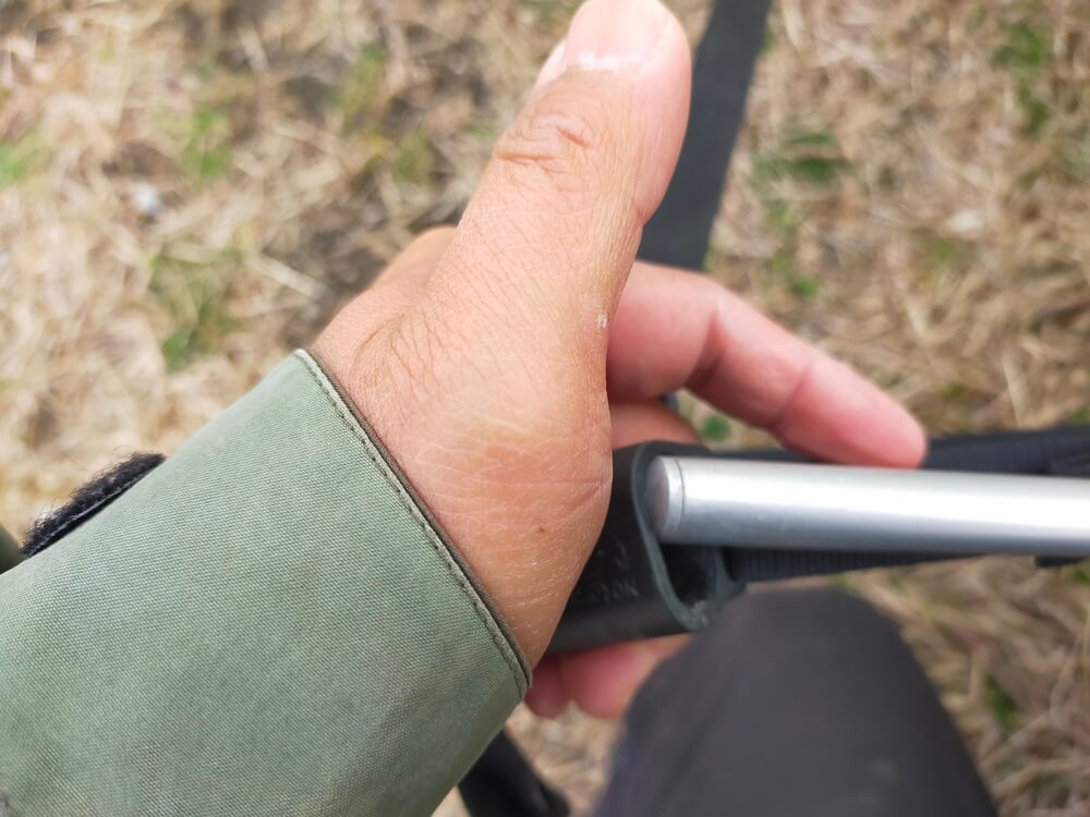 スリーブのエンド部分は袋状になっています。ポールをエンド部分のぎりぎりまで、きっちりと通してください。