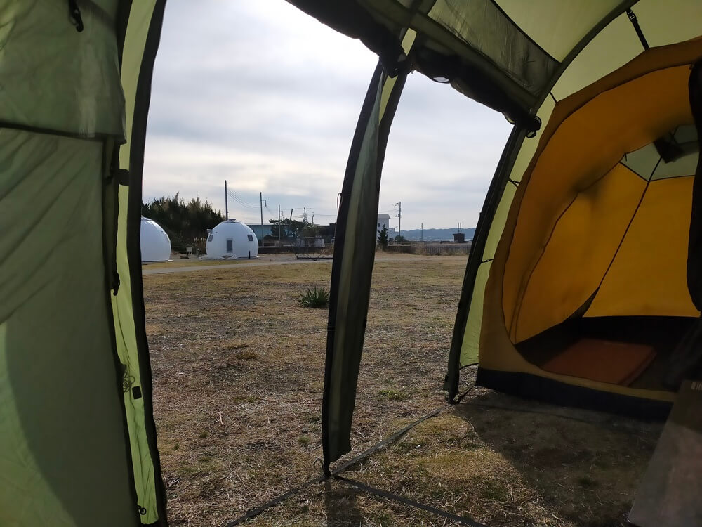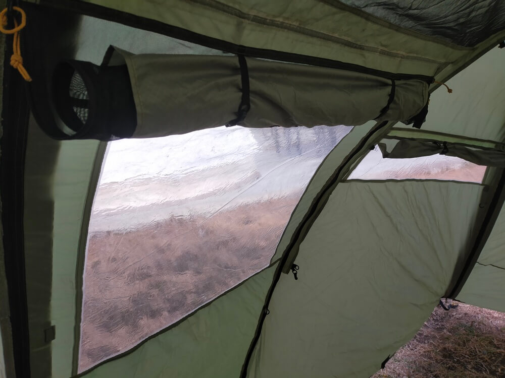 逆に、プライバシーを確保したい場合は、フラップ状の布を下ろすことで、テントの中が外から見えなくなります。