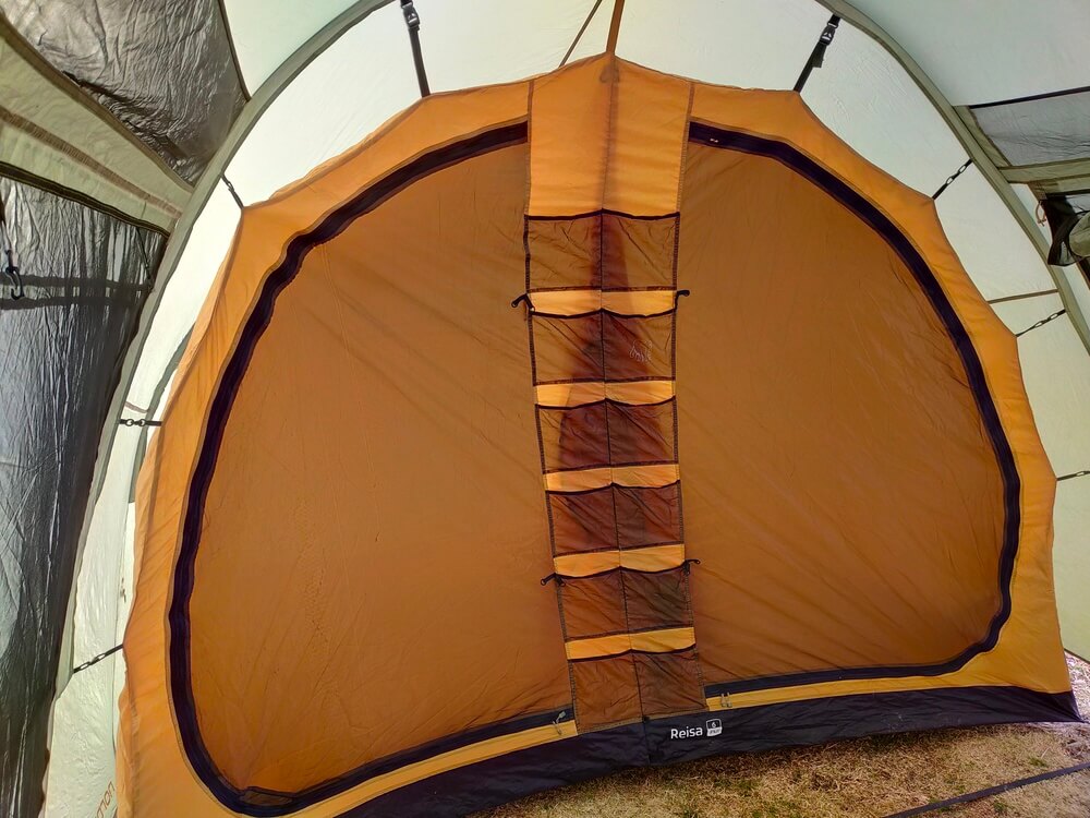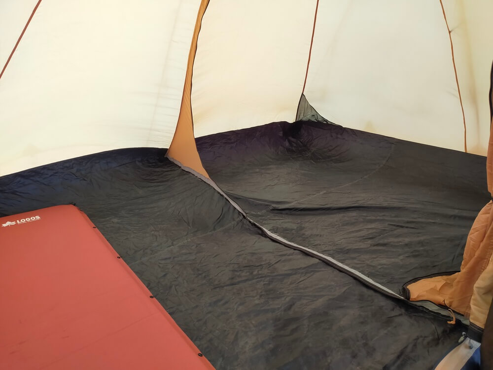 テントの中央にはジッパーで開閉ができる壁があるので、ジッパーを閉めれば部屋を2部屋にできます。とてもユニークな作りですよね。