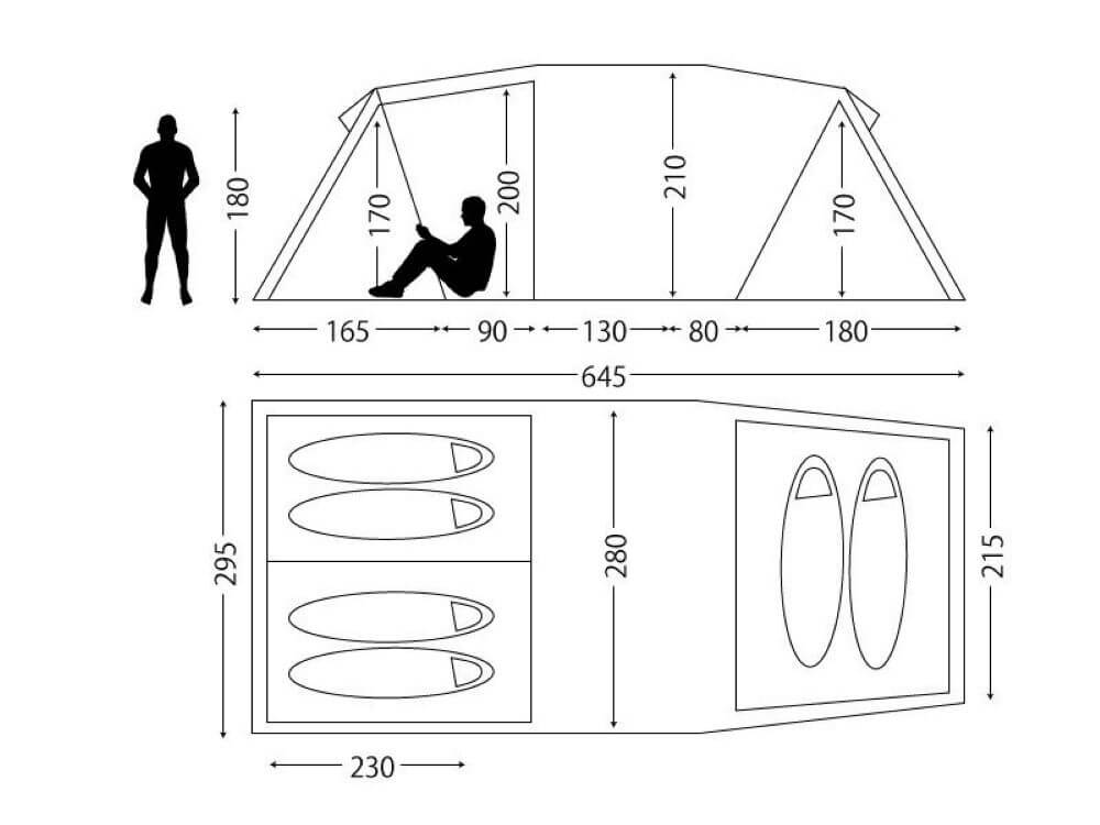 小型と言っても、大き目の2人用テントほどの広さがあるので、2人ならば余裕をもって眠ることができます。