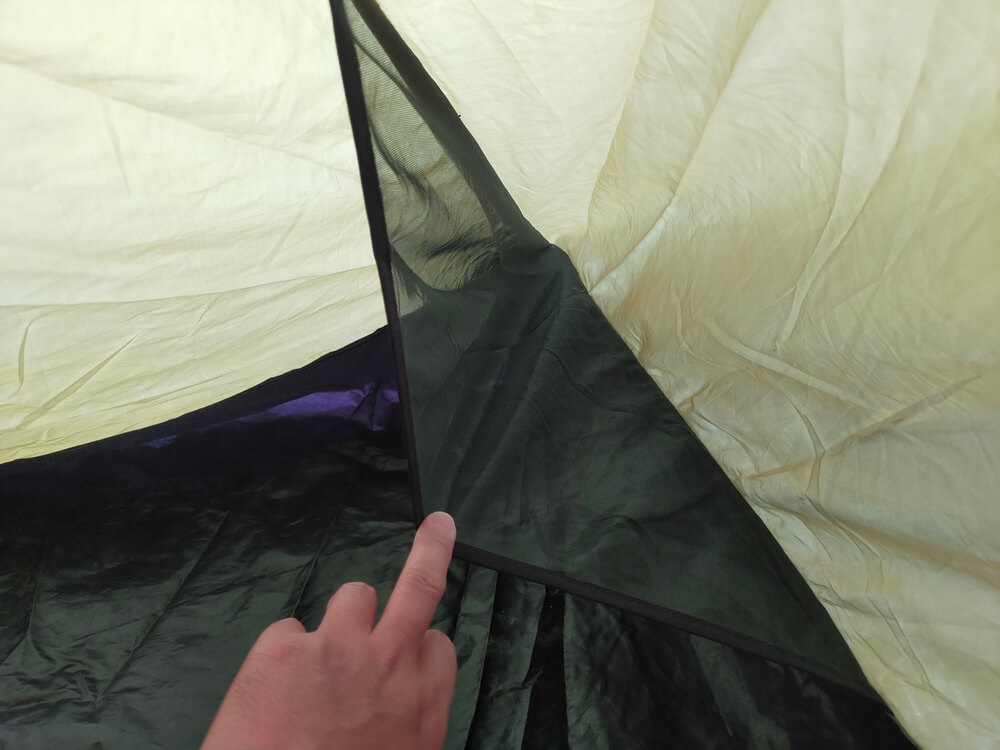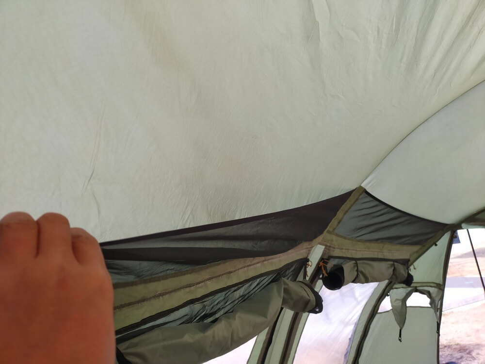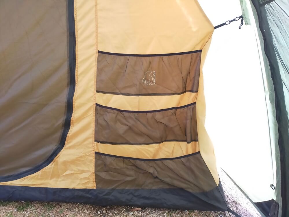 レイサ6はテント内のいたるところに収納があります。収納は全てメッシュ素材でできています。中に何が入っているのかが、一目ででわかるので便利です。