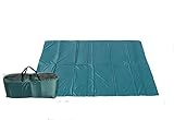 まずはフライシートを広げます。だいたい、普通乗用車1台分ほどのスペースが必要です。