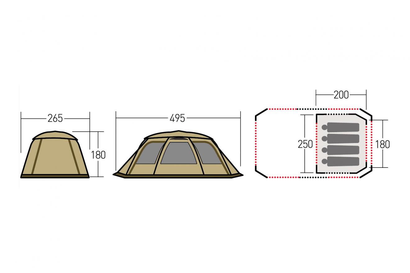 また、テントは張り網をすべて正しく張った状態で剛性が出るように設計されています。