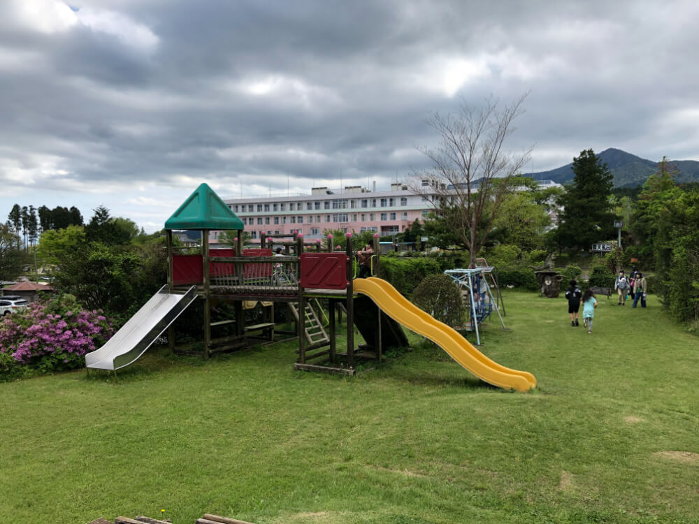 国道を挟んだ反対側にも公園があります。こちらもかなりの規模を誇り、チェックアウト後に遊んでもOKです。