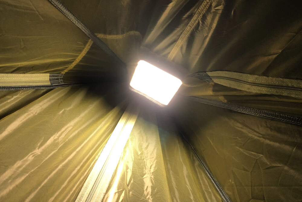 天井部分にもLEDランタンなどを入れられるポケットが設置されています。