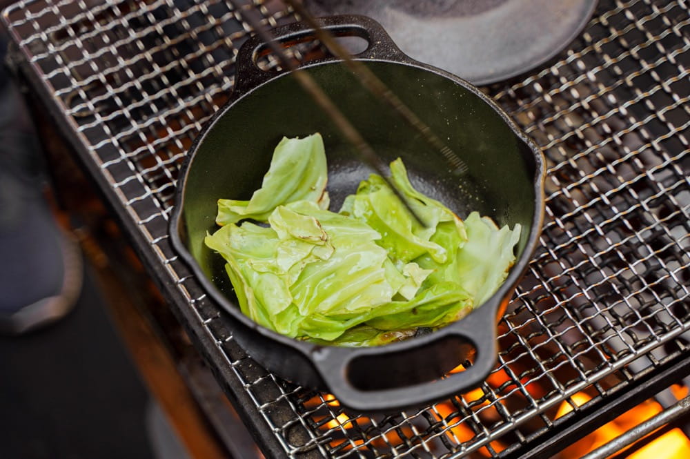 まわりの面が7~8割火が通ってきたら、ひっくり返し火の弱い網目の所で、余熱で火を通します。
