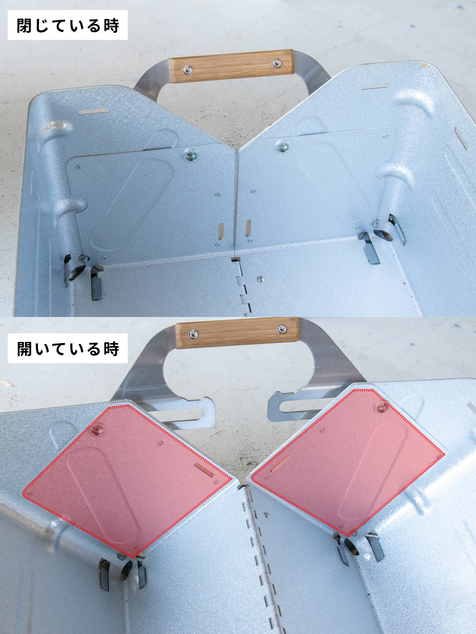 天板は蓋代わりにもなるため、車載時にシェルコンの上に別の荷物を載せることができるようにもなります。