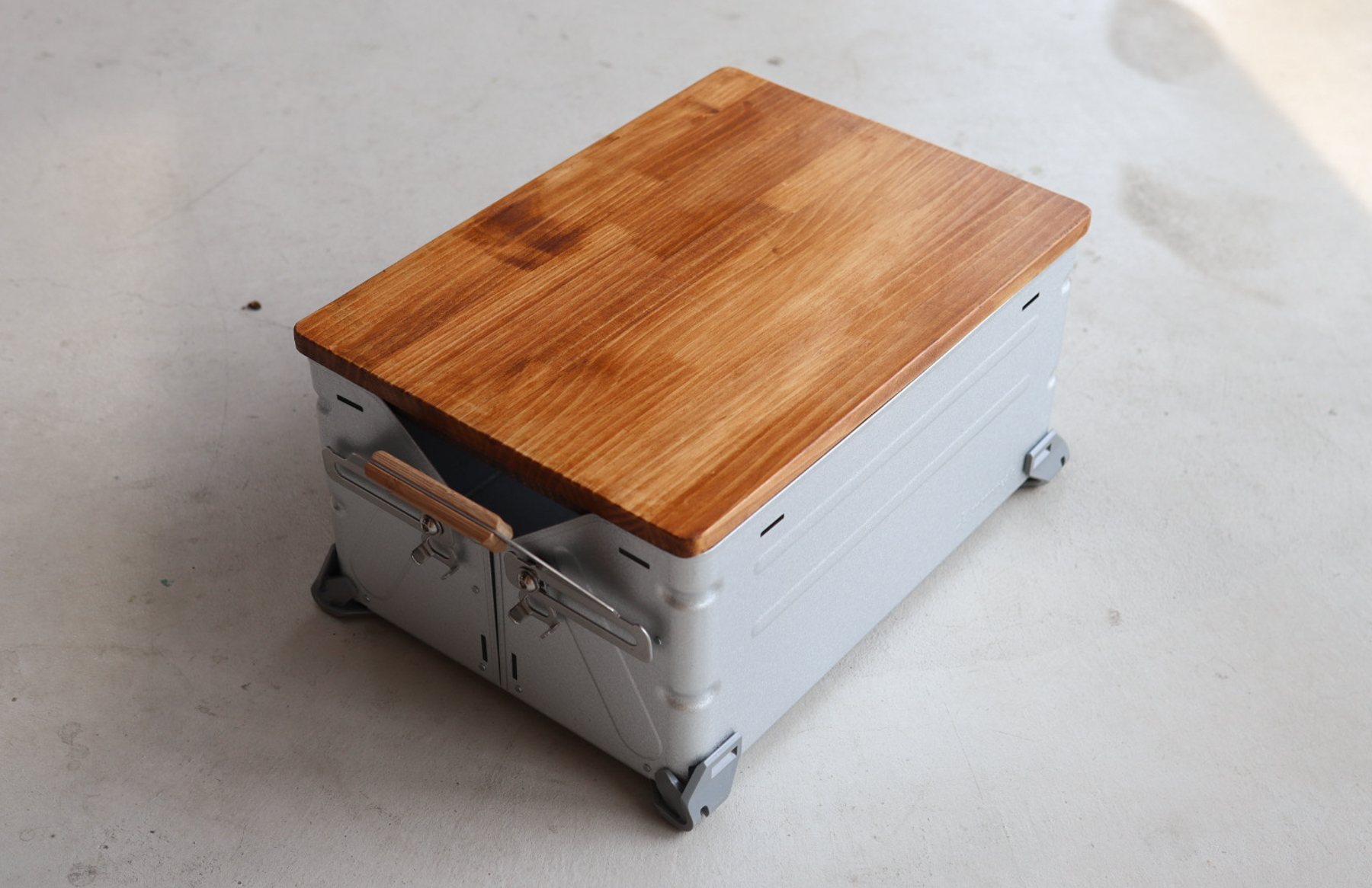 重ねても広げて棚のように使える優れもので、コンテナとしてだけではなく、最上段に天板を載せてちょっとしたテーブルとしても使う。というのが一般的な使い方になっています。