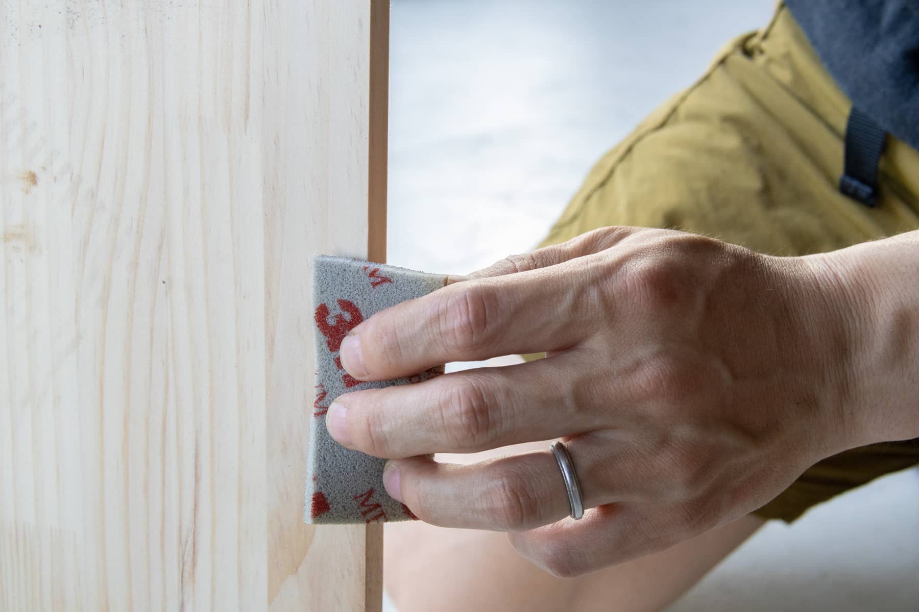 木工やすりで削ります。今回は半径10mm程の角丸にしました。