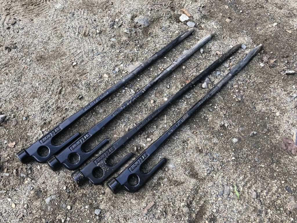 純正のアルミ製のペグがややチープなモノとなっています。強く叩きつけると簡単に曲がってしまいました。