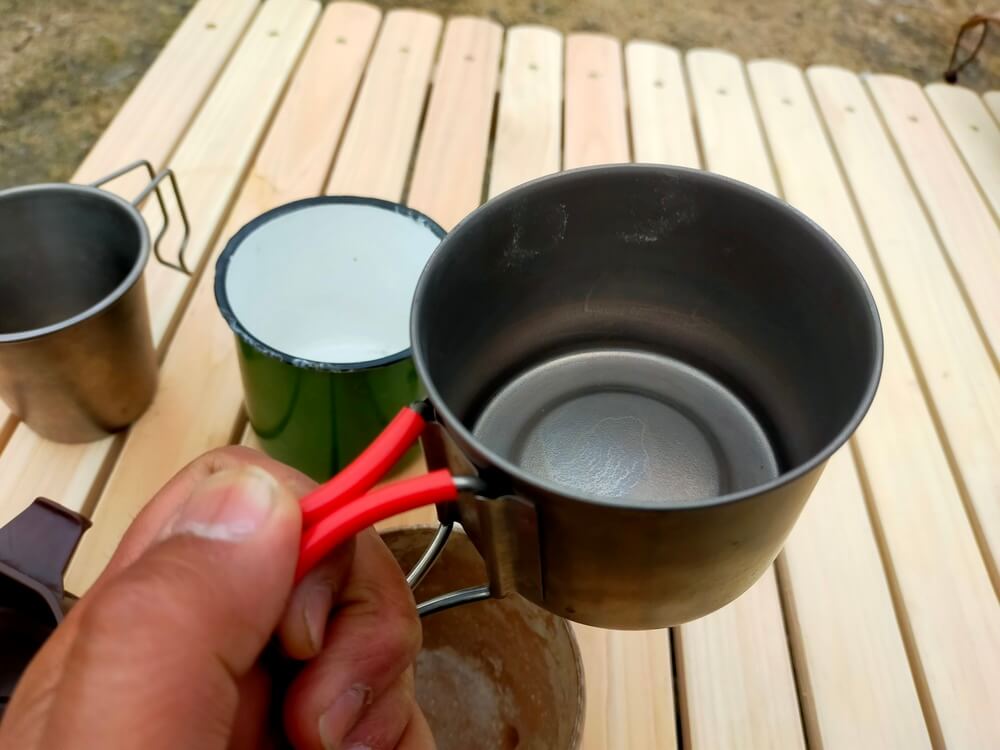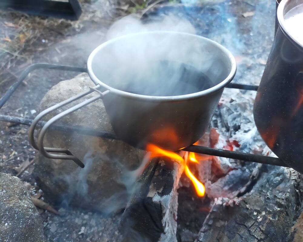 ボウルやシェラカップなどに温かい飲み物を入れて、焚火の火の脇に置いておけば、温かい温度をキープできます。