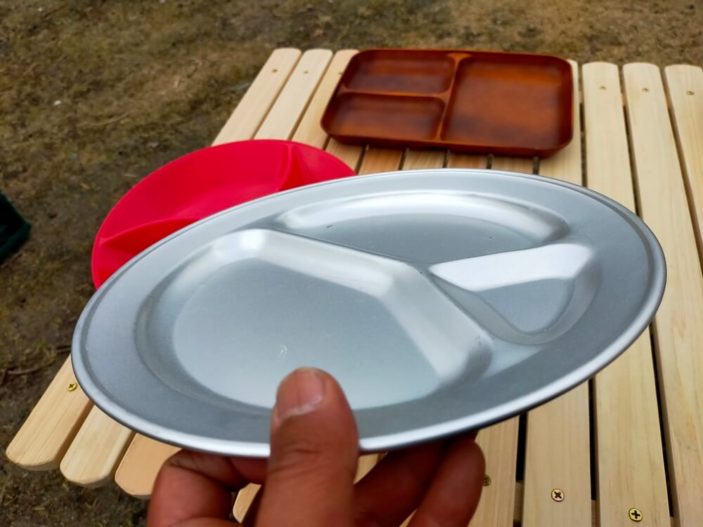 ソロキャンプにおすすめしたいのがランチプレートです。ランチプレートとは仕切りがあるプレートのことです。