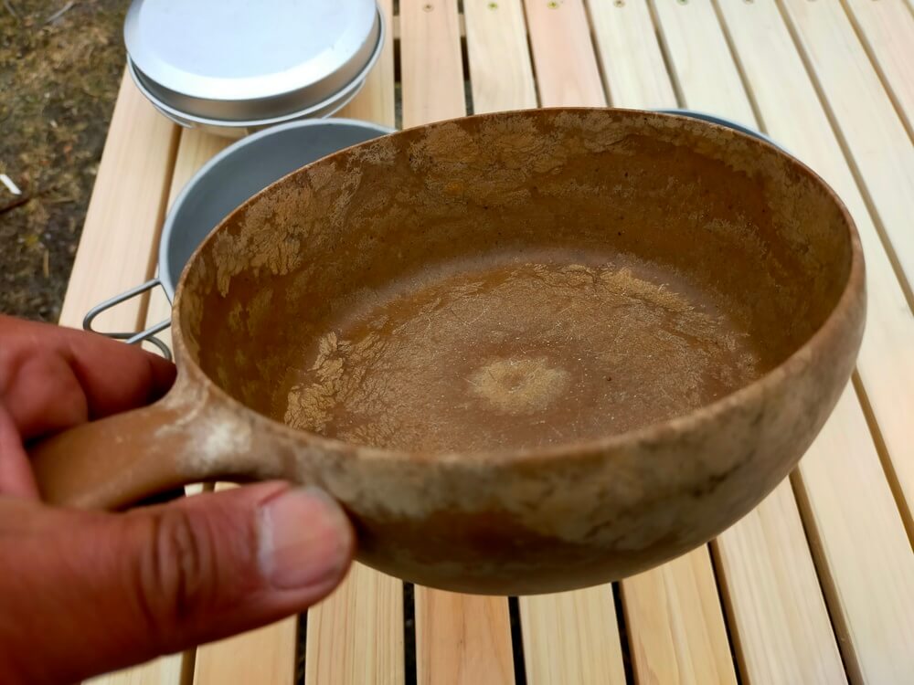 その点、クピルカは木とポリプロピレンの混合素材なので、使い終わった後は洗剤を使って洗うことができます。ククサと比べてメンテナンスが非常に楽です。