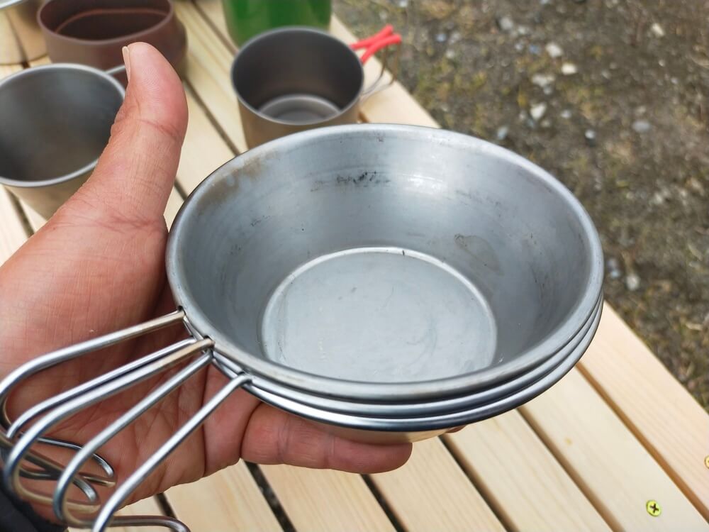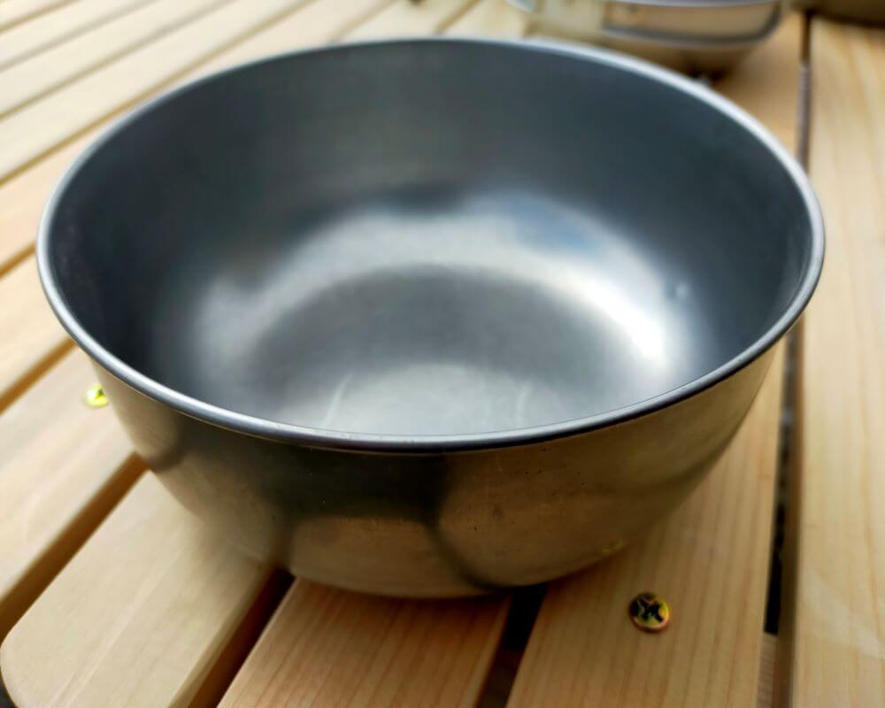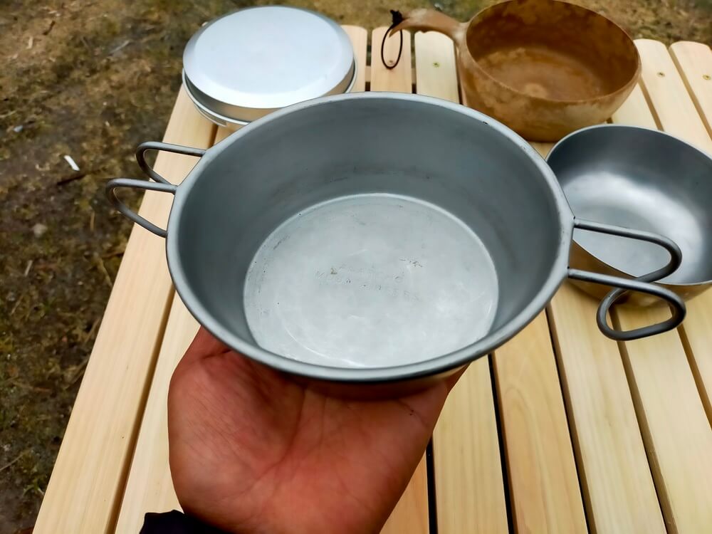 お値段はそこそこしますが、一生付き合うことができる道具のひとつです。焚き火の上に乗せて、煮物や焼き物などのソロ料理にも使用できるので、食器だけだなく小鍋にもなる汎用性の高いボウルです。