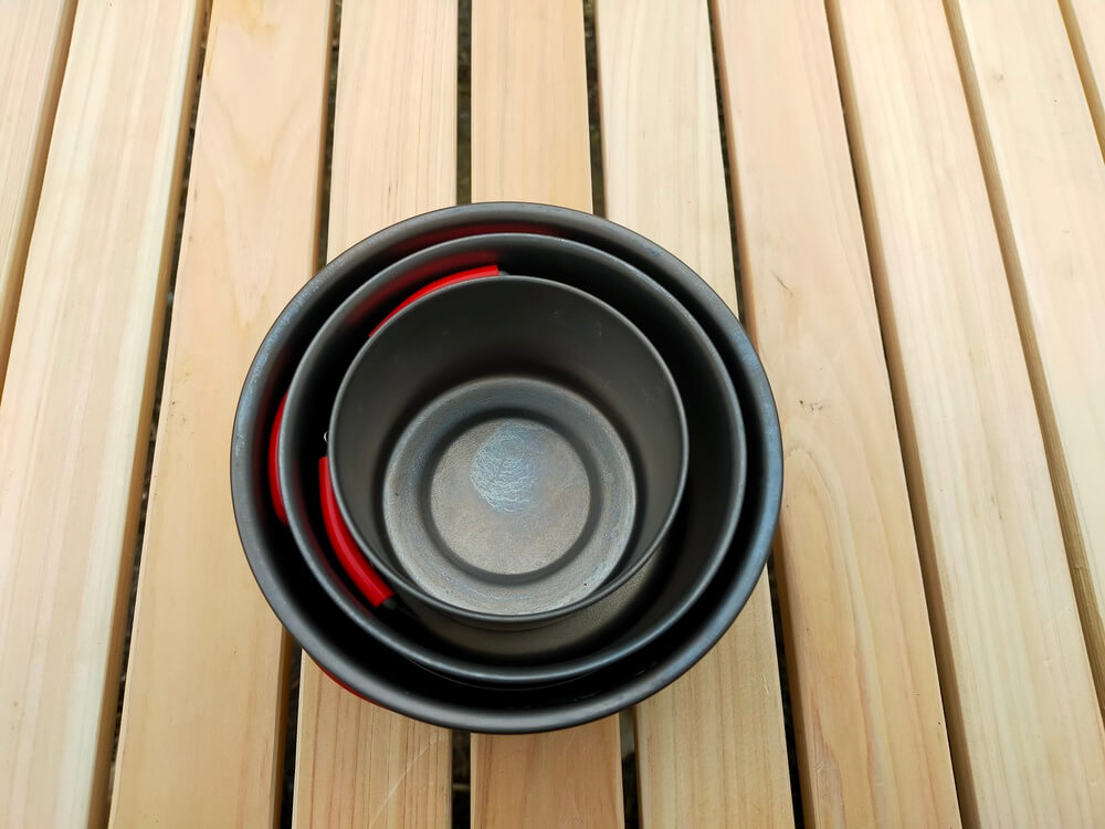 EVERNEWのクッカーにもなる食器は、軽量かつ高品質で、バックパッキングでは非常に使い勝手がいいです。