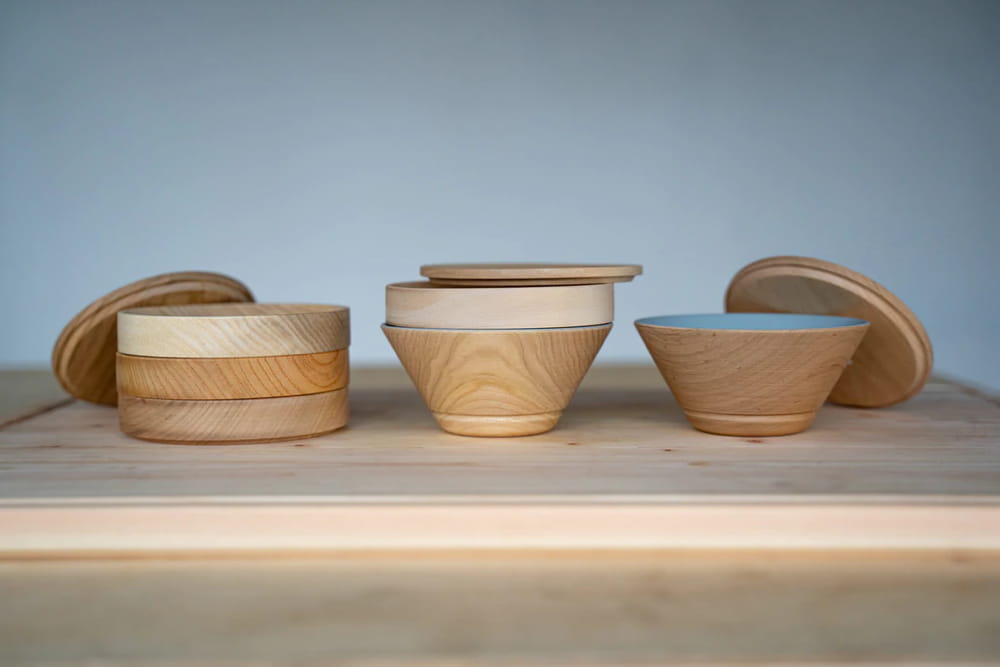 木製の蓋と小皿も製作中です。モクシェラの「シェラ型」と重なる設計になっています。