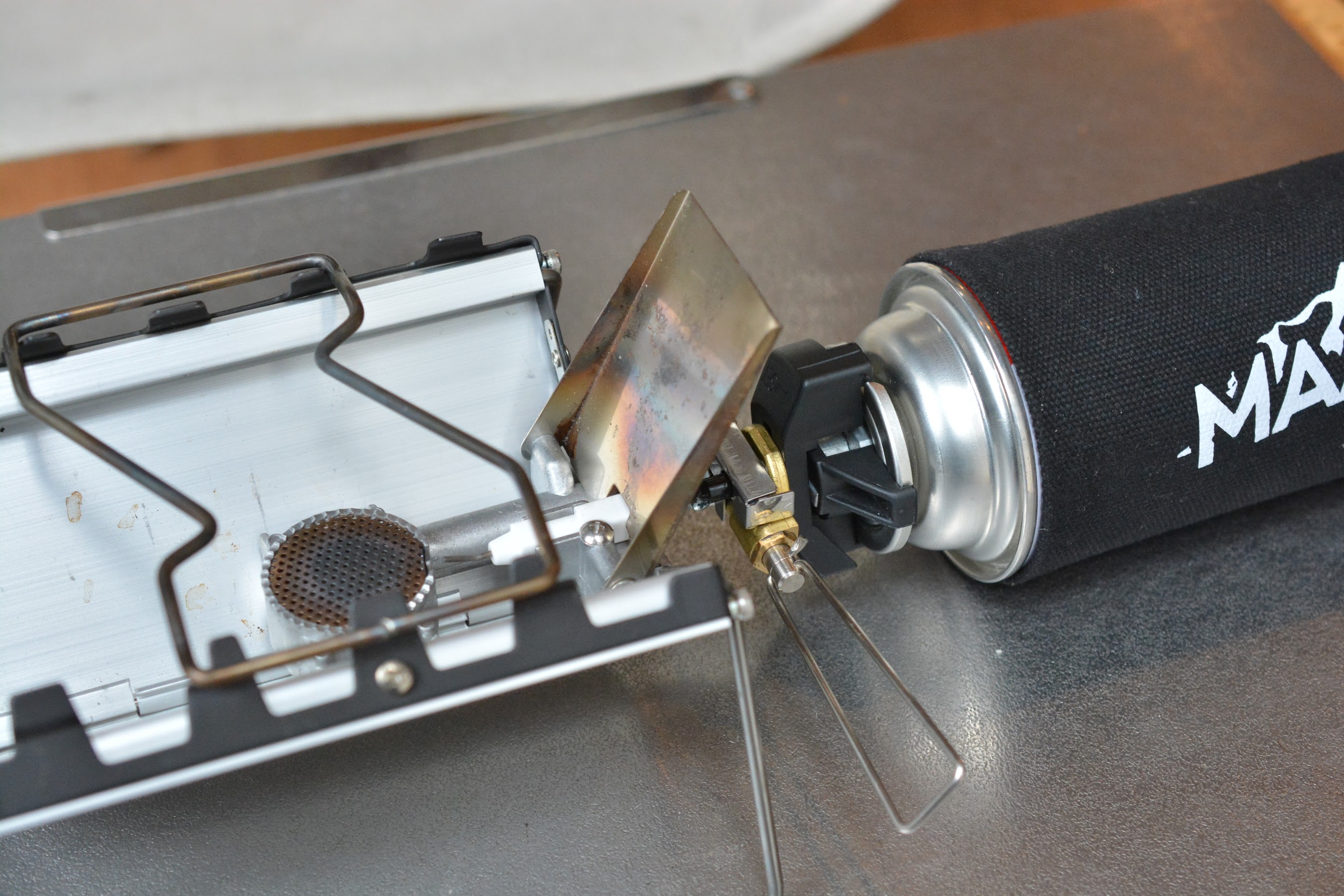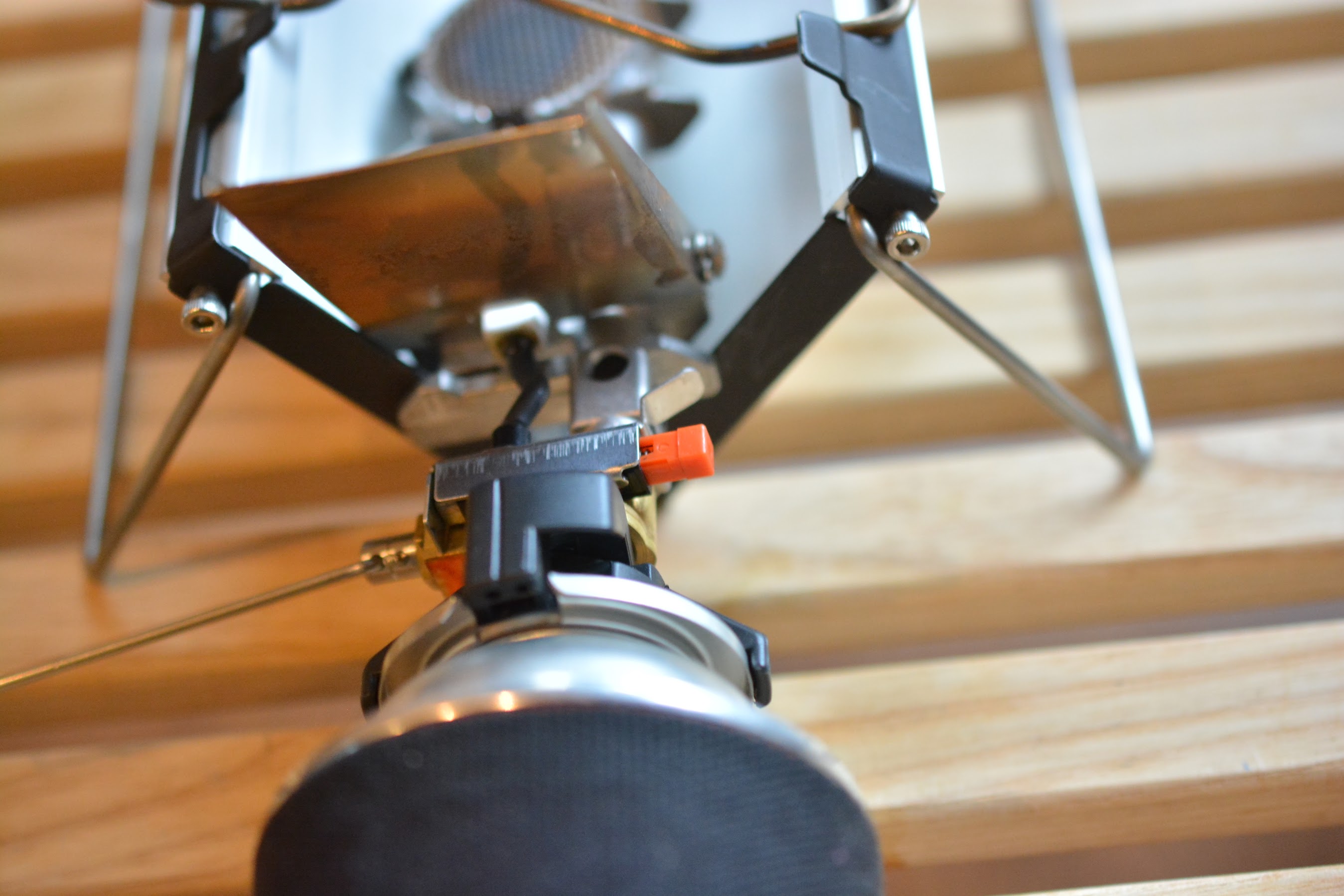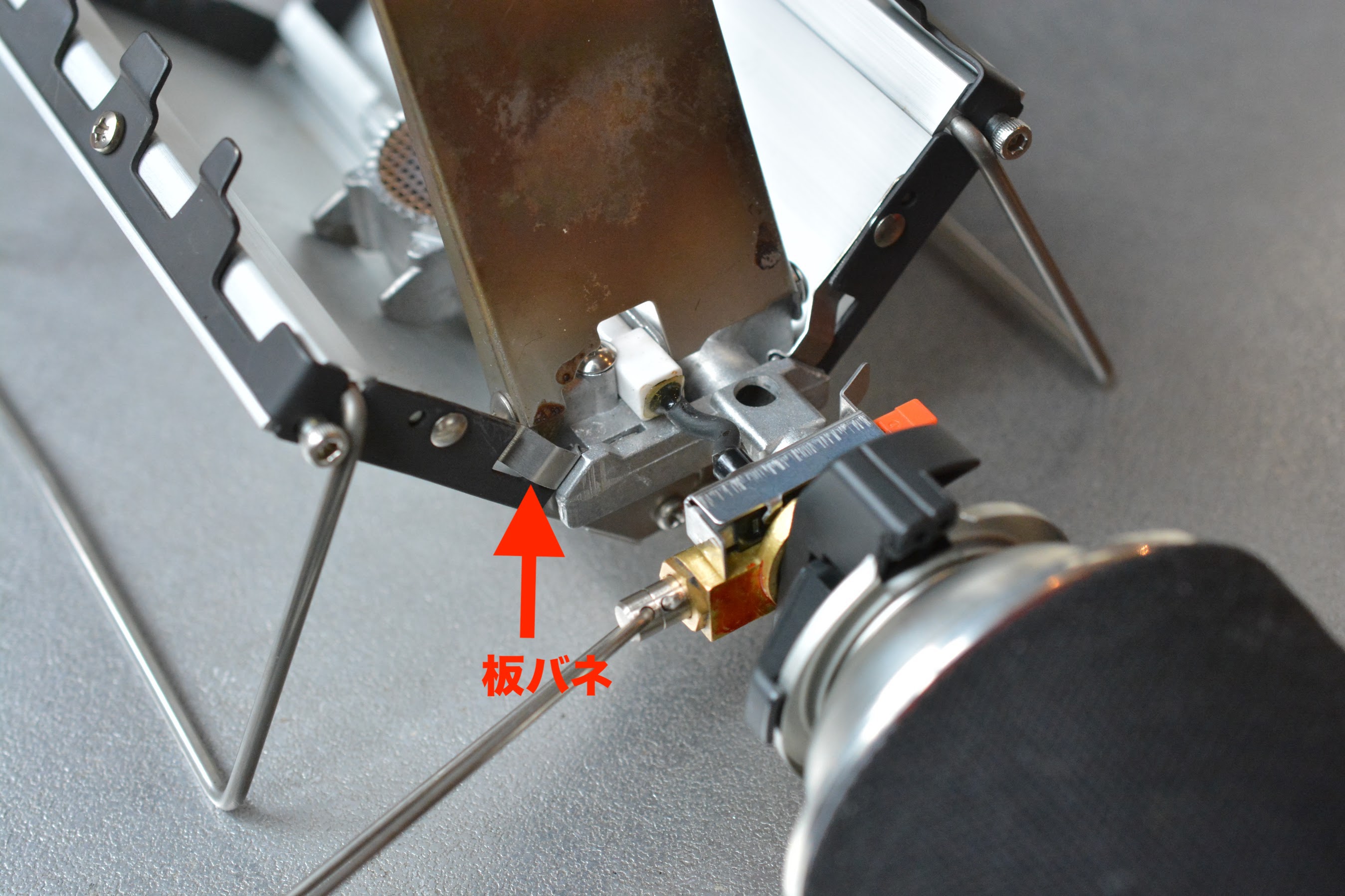 スタンド側に板バネがあって、ちゃんとハマると板バネの下にバーナーがうまいこと収めるイメージです。