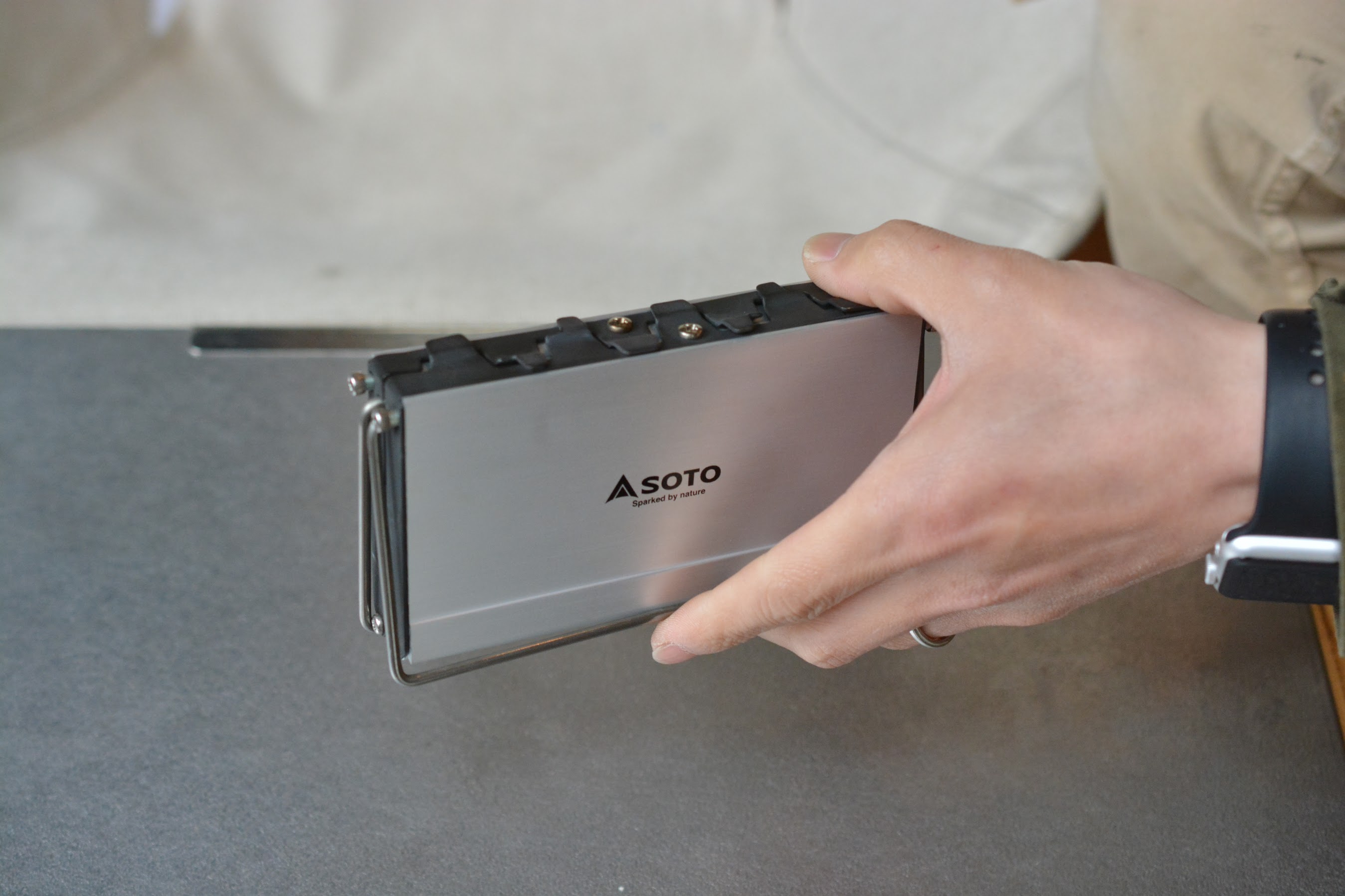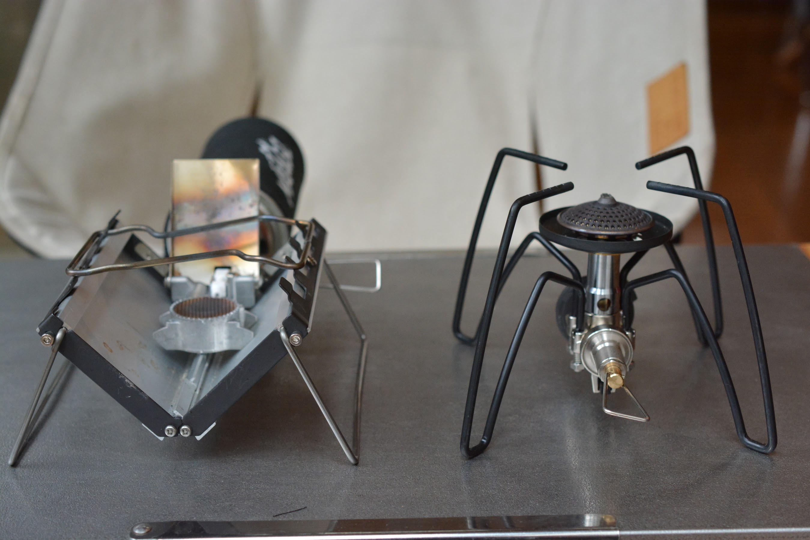 ST-310と比べると分かるのですが、火元が十分に低い位置にあり、なおかつ風防が両サイドを囲っているため風に強いですね。