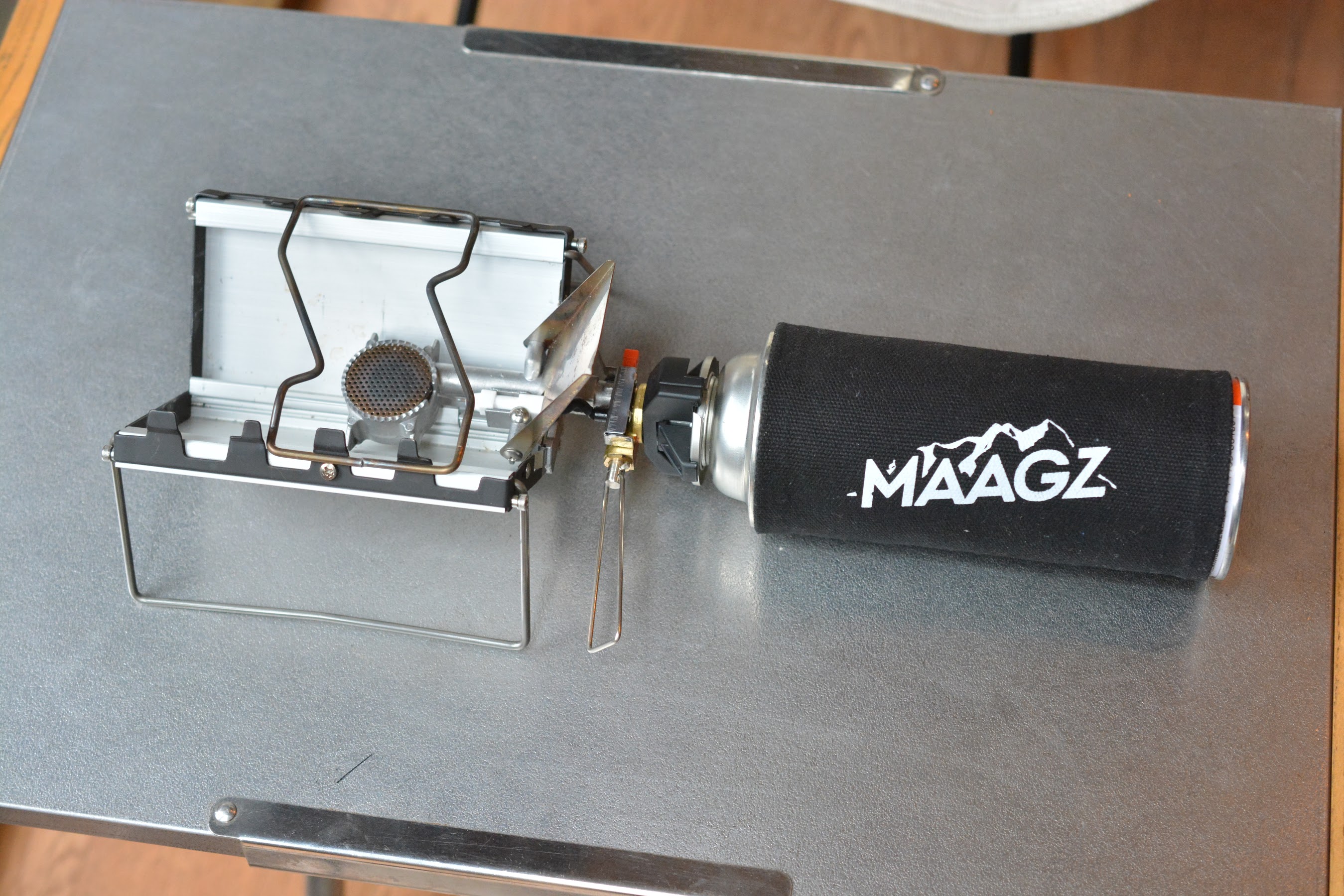 続いては、Gストーブ ST-320のレビューです。こちらも、CB缶(カセットボンベ)缶を使用するアウトドアバーナー。