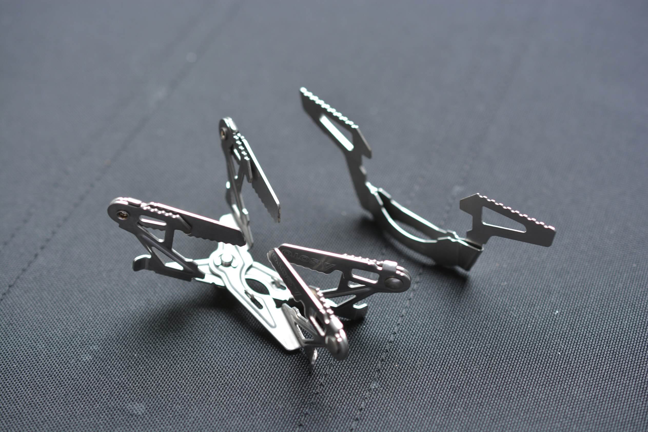 「トライフレックス」と呼ばれる3本脚の標準ゴトクは、このように非常に小さくなるため、可搬性に優れます。