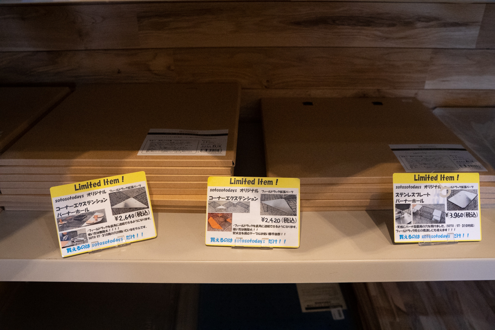 オリジナルカラーのフィールドラックが好評ですね。あとはこの時期だからというのもありますが、シュラフや焚き火台など。あとはほりにしのスパイスですね。