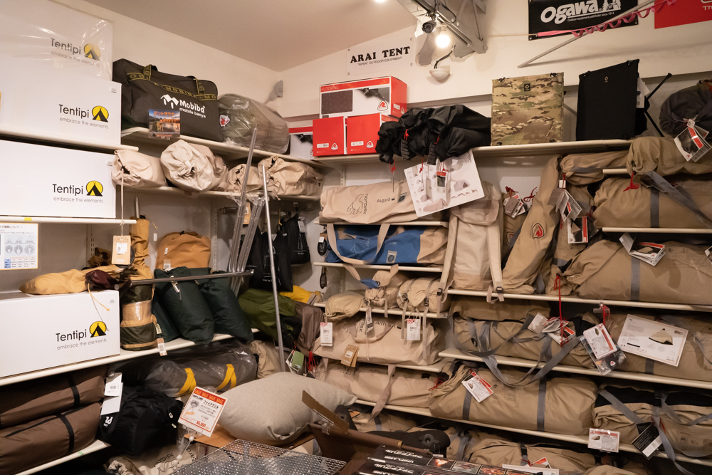 商品数の多さは「各社製品を実際にモノを見て比較できるように。」という配慮でもあるそう。ユーザー目線のお店作りが、sotosotodaysならではの居心地の良さに繋がっているのですね。アウトドア好きなら何時間でも見ていられます。