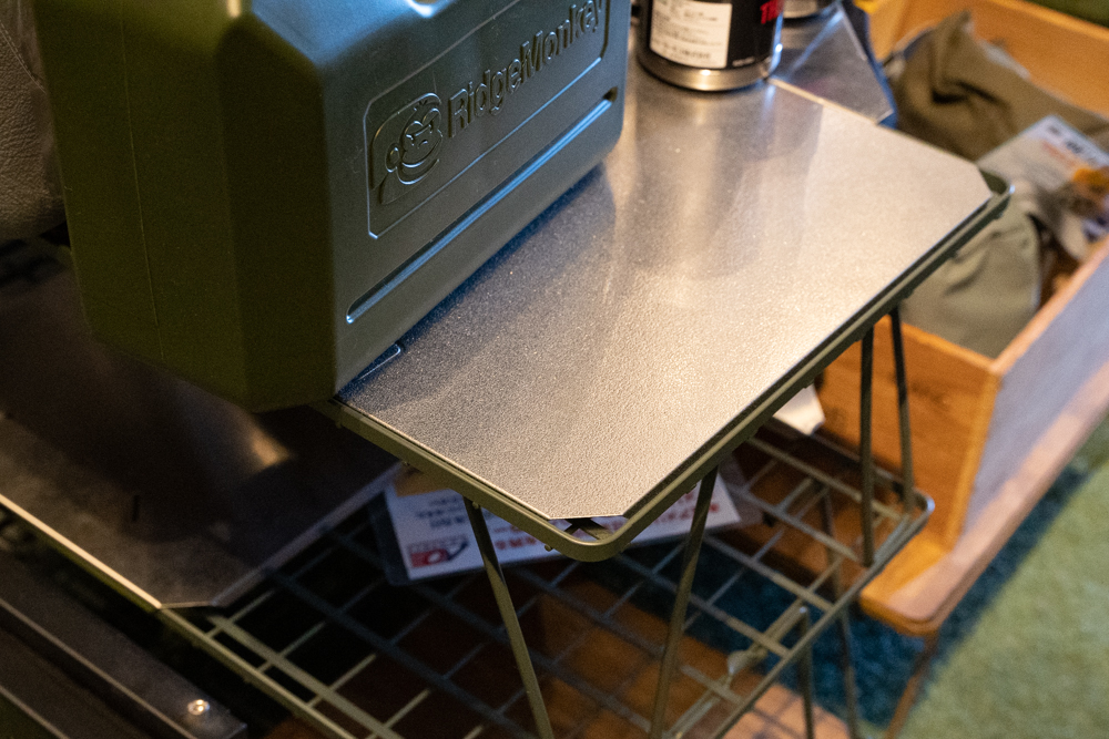 うちはオリジナルもたくさんあるんです。上の写真はUNIFLAME フィールドラックの利便性をさらに拡張するギア。