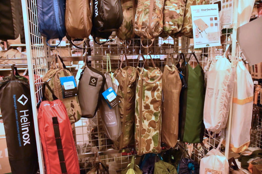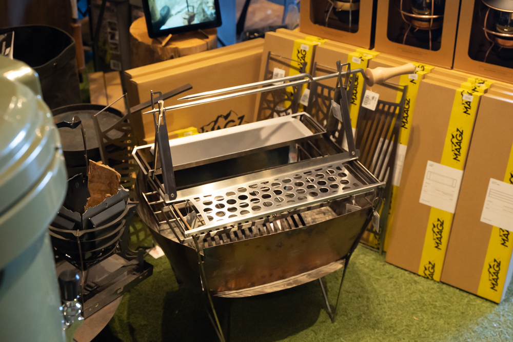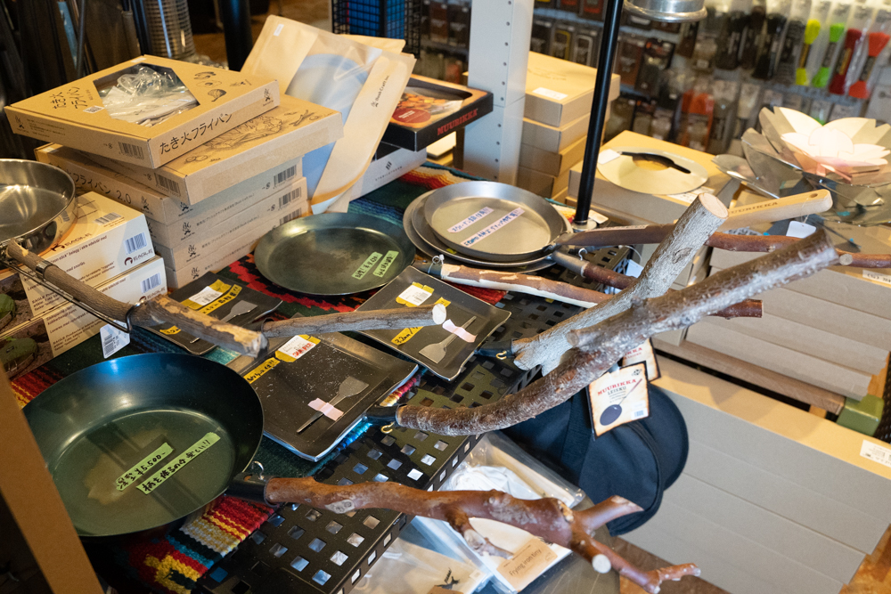 ブッシュクラフトincの調理器具も充実。このコーナー以外にも調理器具が並び充実度はかなりのもの。