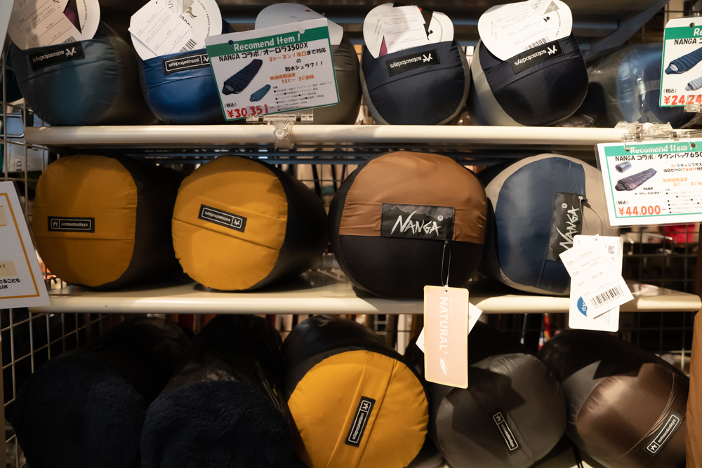 NANGAのコーナーにあったsotosotodays×NANGAのコラボモデルのシュラフ。