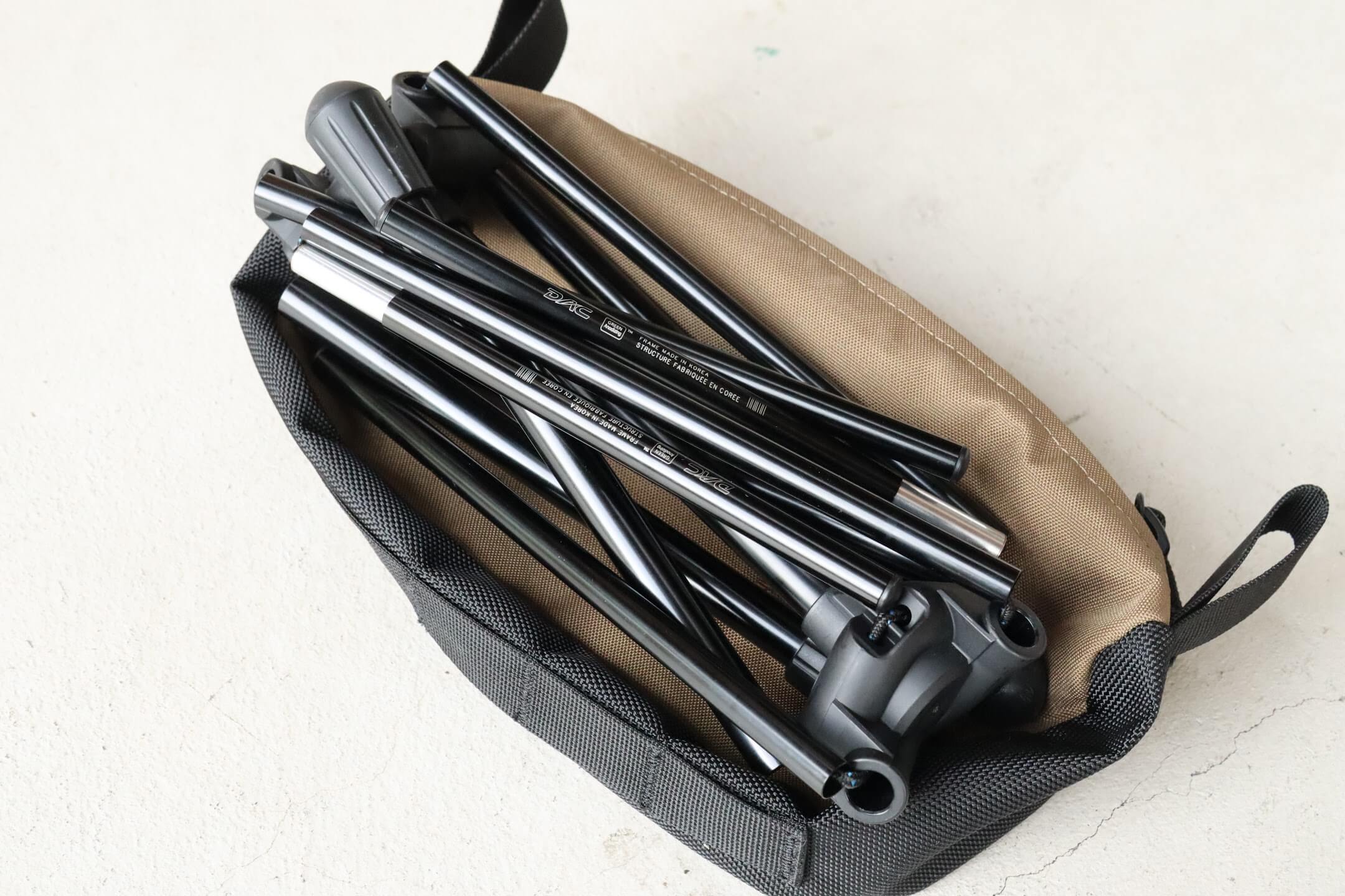 実際手に取ってみると、ヘリノックスチェアのクオリティはそのままミニチュア化された様な印象で、めっちゃソソる感じに仕上がっています。
