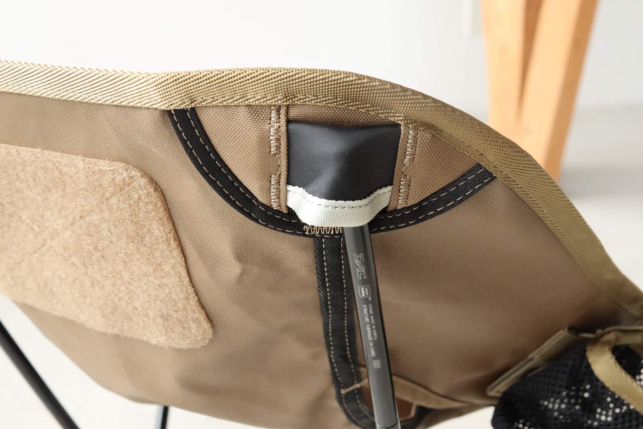 縫製など細部の仕上げも非常に丁寧で、特にポールを入れるキャッチ部は非常に強固なステッチ、素材で構成されています。