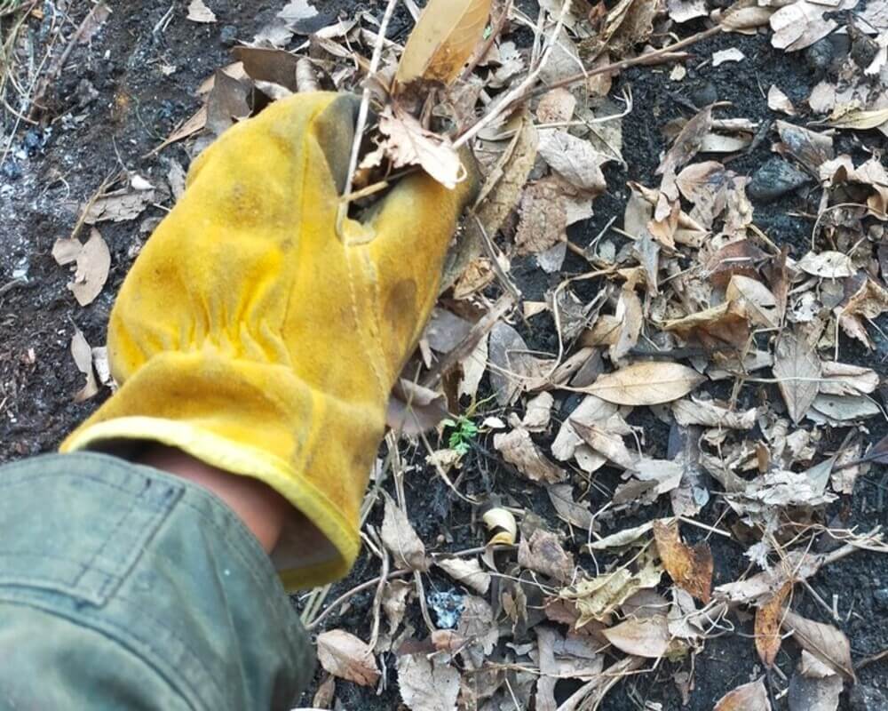 その後、近くにある落ち葉などを上にまいて、周りと同じ状態にします。どこで焚き火をしたかわからなくなるぐらいまで、しっかりと後始末をしましょう。