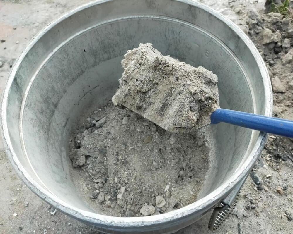 灰の上に少量の水をかけると、うまく灰と土を混ぜ合わすことができますよ。