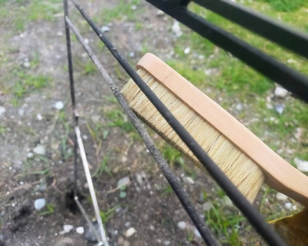 焚き火台を傷つけることがない適度な硬さがあり、細かい所までしっかりと綺麗にできます。焚き火台以外にも、チェアやテーブルについた泥の掃除にも便利なブラシですよ。
