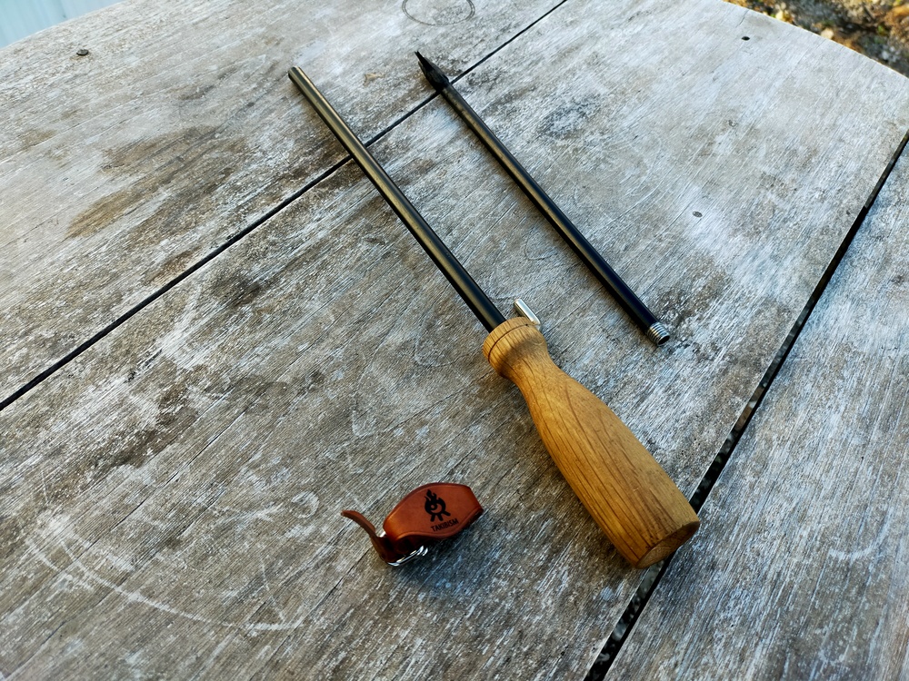 著者も使い始めは、ブレストゥファイヤを革製のバンドで絞めて使用していました。しかし、バックパックに入れて出かけた際に、上下パーツが外れていることが多々あったので、別売りのスティックケースを購入して収納するようになりました。