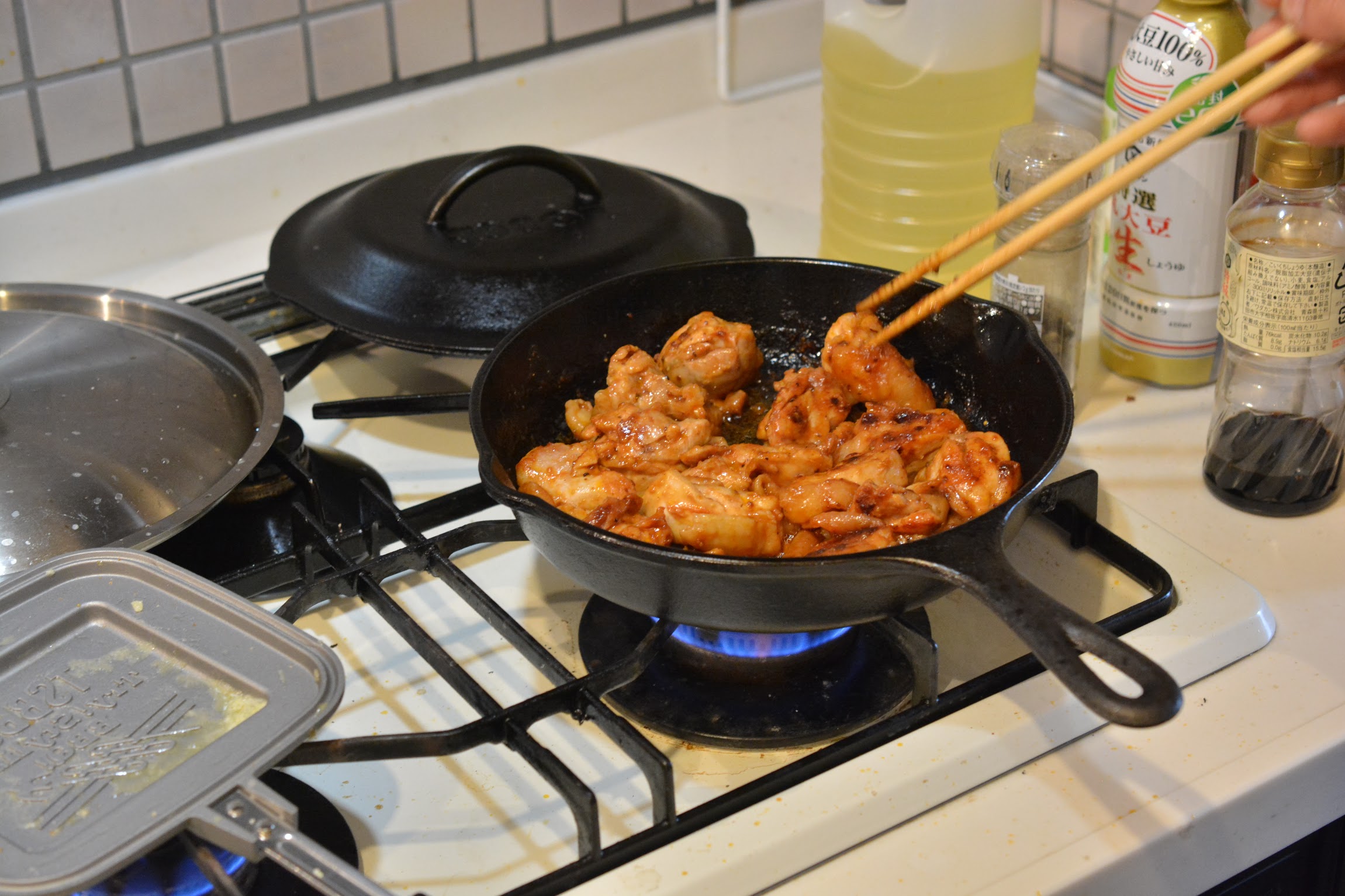 LODGE(ロッジ)製のスキレットでBBQチキンをメイクして、挟んでみました。