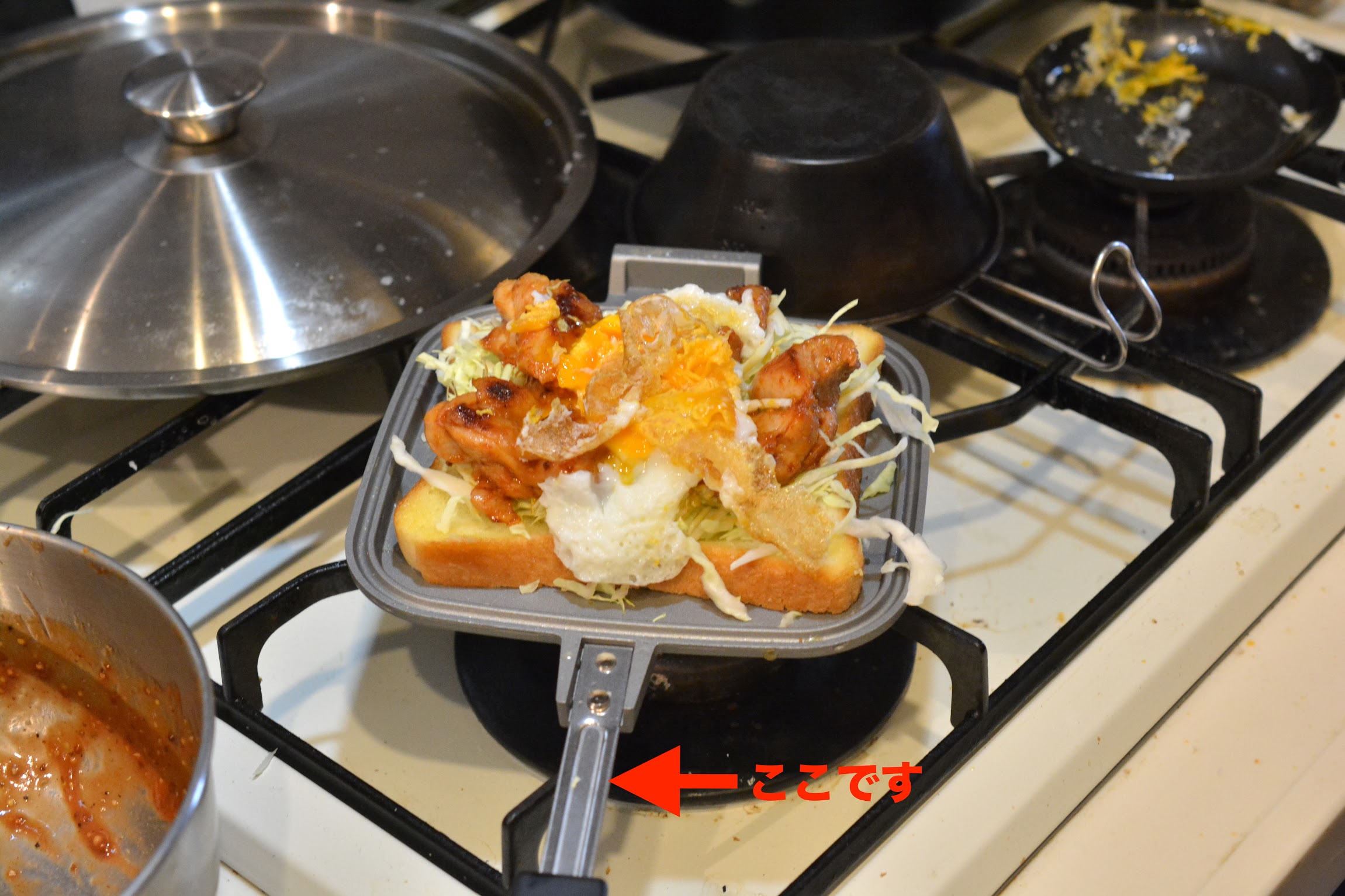 上側のパンをほんのちょっと奥に置くことで全く問題なく挟み込むことが出来ます。