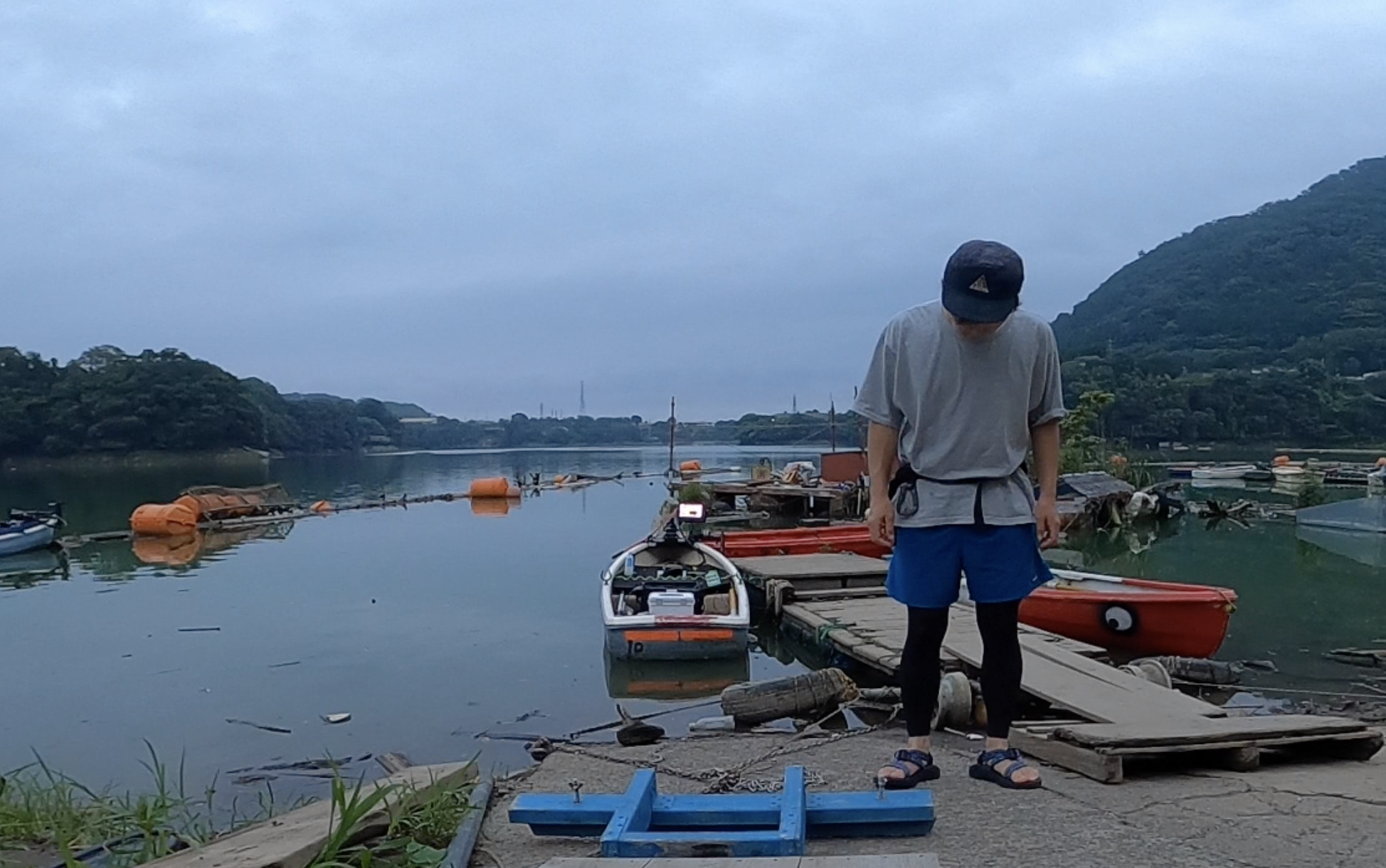 また、フィールドテストとして【男性用】虫除け冷却レギンス(Lサイズ)を淡水湖のボートフィッシング(バス釣り)で着用してきました。朝5時から夕方5時頃まで、基本的には遮るものの何も無い屋外に居るので、浴びる紫外線の総量はかなり多めです。そして何よりとても暑い!(テスト日は曇り)