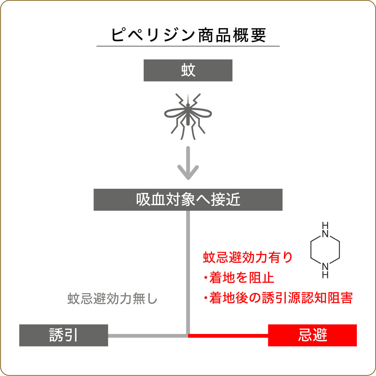 虫よけ剤として広く使われている化合物「ディート」よりも3倍以上効果が長持ちし、虫除け効果のある成分では安全性が高いと言われています。蚊やその他害虫に対して忌避効力を持ち、「ピペリジン」系化合物は認知能力を混乱させる効力が強いため、蚊や害虫が肌に止まった場合でも吸血されにくくなります。マイクロカプセル製剤なので、洗濯にも強く、効果が長持ちします。